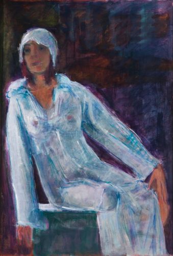 Dolce sogno (ragazza assopita) Soggetto: FIGURE Tecnica: ACRILICO SU CARTONE TELATO Dimensioni: CM. 68x49 Anno: 2007