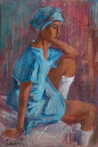 Nello studio Soggetto: FIGURE Tecnica: ACRILICO SU CARTONE TELATO Dimensioni: CM. 54x64 Anno: 2006