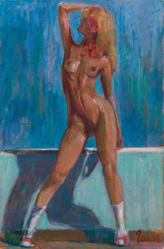 All'aria aperta (nudo in piedi) Soggetto: FIGURE Tecnica: ACRILICO SU TELA Dimensioni: CM. 40x60 Anno: 2005